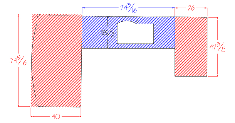 Arches and radiused pieces can be quoted using the same principle previously outlined in the angled cabinet example. The only dimensions needed are the maximum length and the maximum width of the piece.