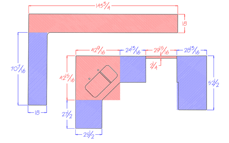 Angled cabinets or other irregular shapes can be quoted by entering the largest length and the largest width. Be careful to not overlap your corners, as this will figure material that is not necessary.